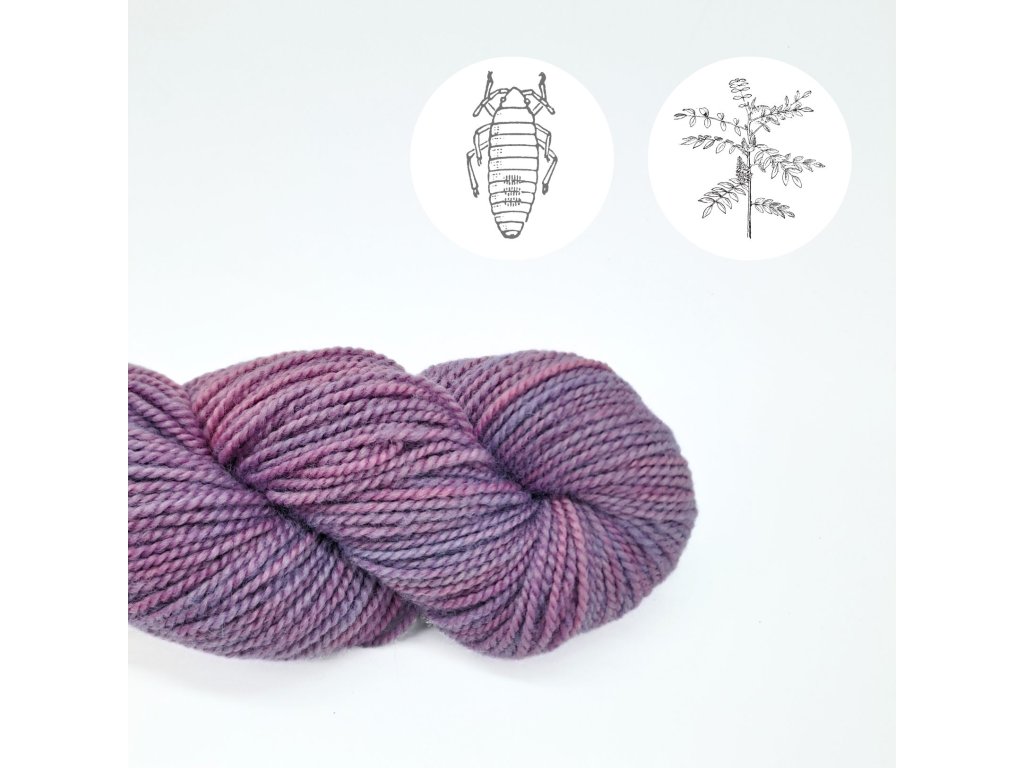 Velmi příjemná příze z fine merina obarvená košenilou a indigem. Barva je tónovaná do přecházejících odstínů letních hortenzií. Vyšší zákrut tvoří jemnou perličkovou strukturu.
