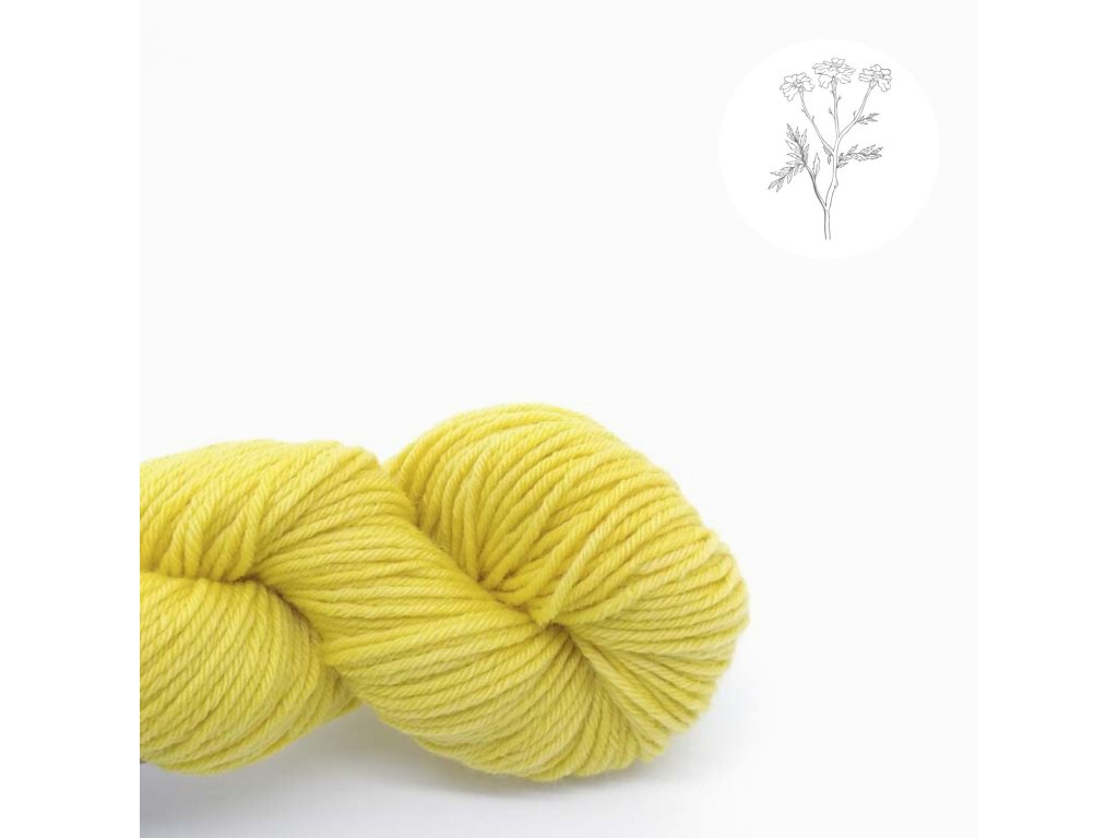 Velmi příjemná příze z extra fine merina obarvená květy aksamitníku. Na omak měkká a hebká, matný vzhled.
